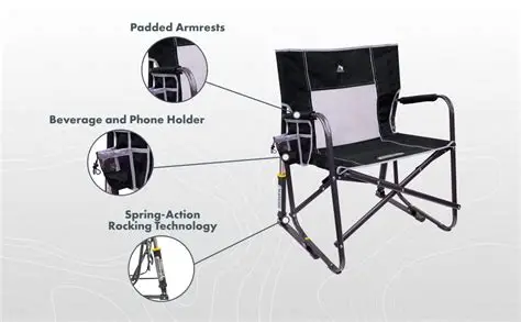 Ideal for portability, this foldable rocker features a spring-based rocking system, powder-coated alloy steel frame, and PVC-backed polyester seating. It includes a cupholder and is ultralight (~11.8 lbs), perfect for on-the-go relaxation.