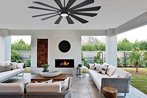 This large 65‑inch span fan delivers strong airflow, making it suitable for large patios or covered porches. The textured coal finish gives a stylish matte look; the included LED and remote control add convenience. Its size demands good ceiling height and proper clearance to avoid hazards. It’s perfect for open‑air structures or big entertaining spaces where design statement and performance go hand in hand.