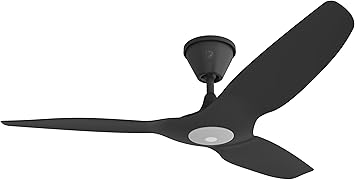 This is a premium marine/coastal‑grade fan. The blades are made of high‑performance material that resists salt air and corrosion, and the mounting and motor housing are sealed and coated to withstand ocean‑front conditions. It includes a dimmable LED light (2700 K), a matte white finish, and smart controls. Because of its quality, this fan is quieter than many lower‑end models, and it maintains performance in harsh weather with minimal maintenance. If you live near the sea, in high humidity, or want a very durable high‑end aesthetic, this model is ideal.