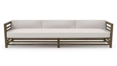 This three-seat wood sofa uses premium hardwood (like teak) and comfortable cushions. The wood gives a natural warmth, while the design ensures outdoor resilience.