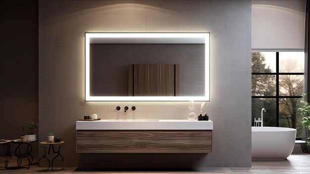 A contemporary mirror with built-in LED lighting offering even, flattering illumination for grooming tasks.