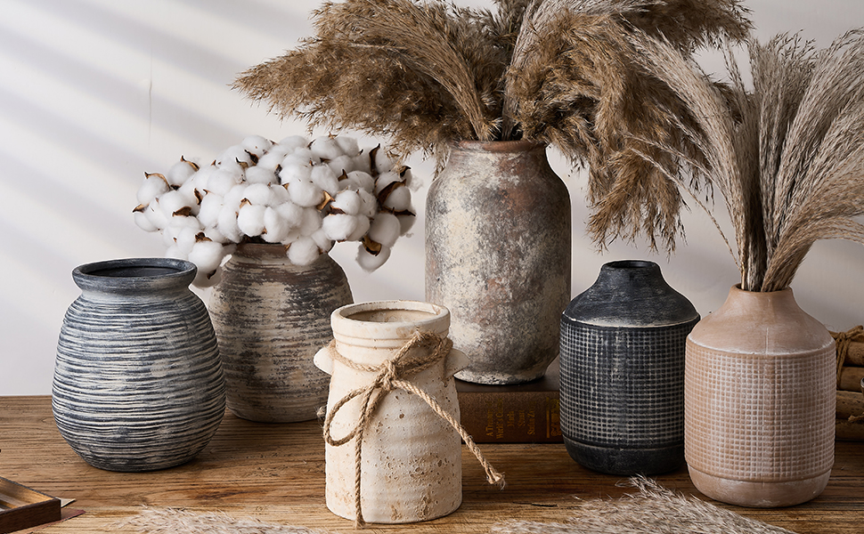 1. BeeHome Ceramic Vase and Dried Flowers Centerpiece Set