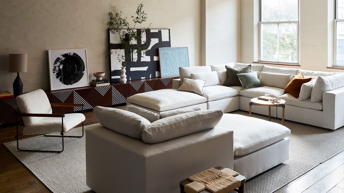 Known for its plush, overstuffed cushions and premium performance fabric, the West Elm Harmony is one of the coziest sofas available. It offers deep seating that fits families who love cuddling together with plenty of room.