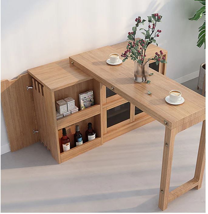 The Foldable Dining Table with Built-In Storage Cabinet is a multifunction piece that transforms any small area into a dining space. When folded, it becomes a slim cabinet with storage compartments for utensils, plates, or household items. When extended, it turns into a full dining table that can seat two to six people, depending on the design.
