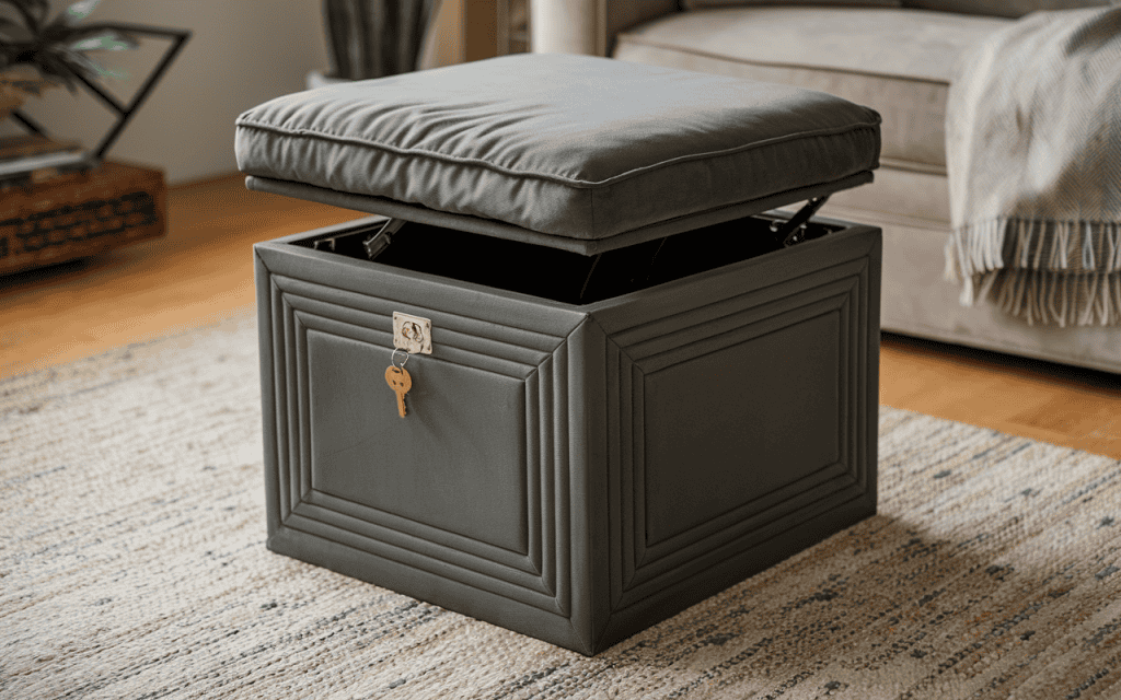 This model stands out due to its premium design and multi-use functionality. It functions as seating, a coffee table, a footrest, and a storage unit making it ideal for homes where every piece of furniture must serve more than one purpose. The upholstered exterior blends into any interior style, so guests would never suspect what’s stored inside.