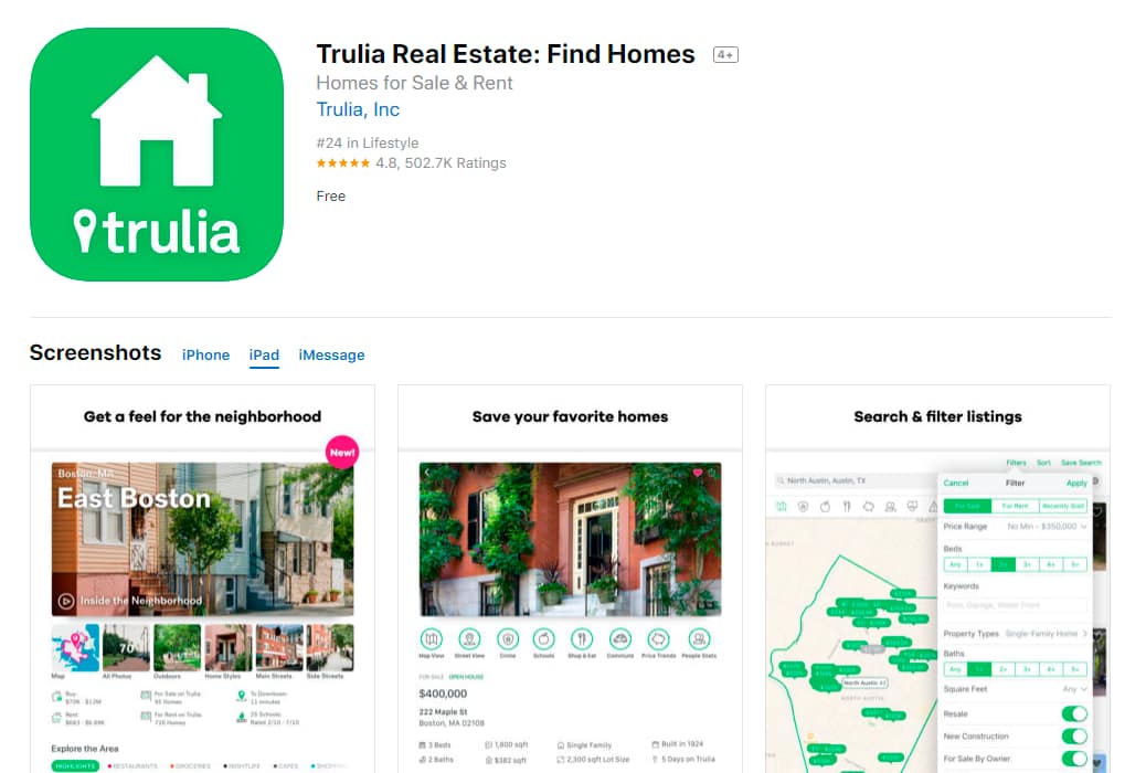 Trulia focuses on lifestyle and neighborhood data. In addition to listings, it provides crime rates, school ratings, and community insights.