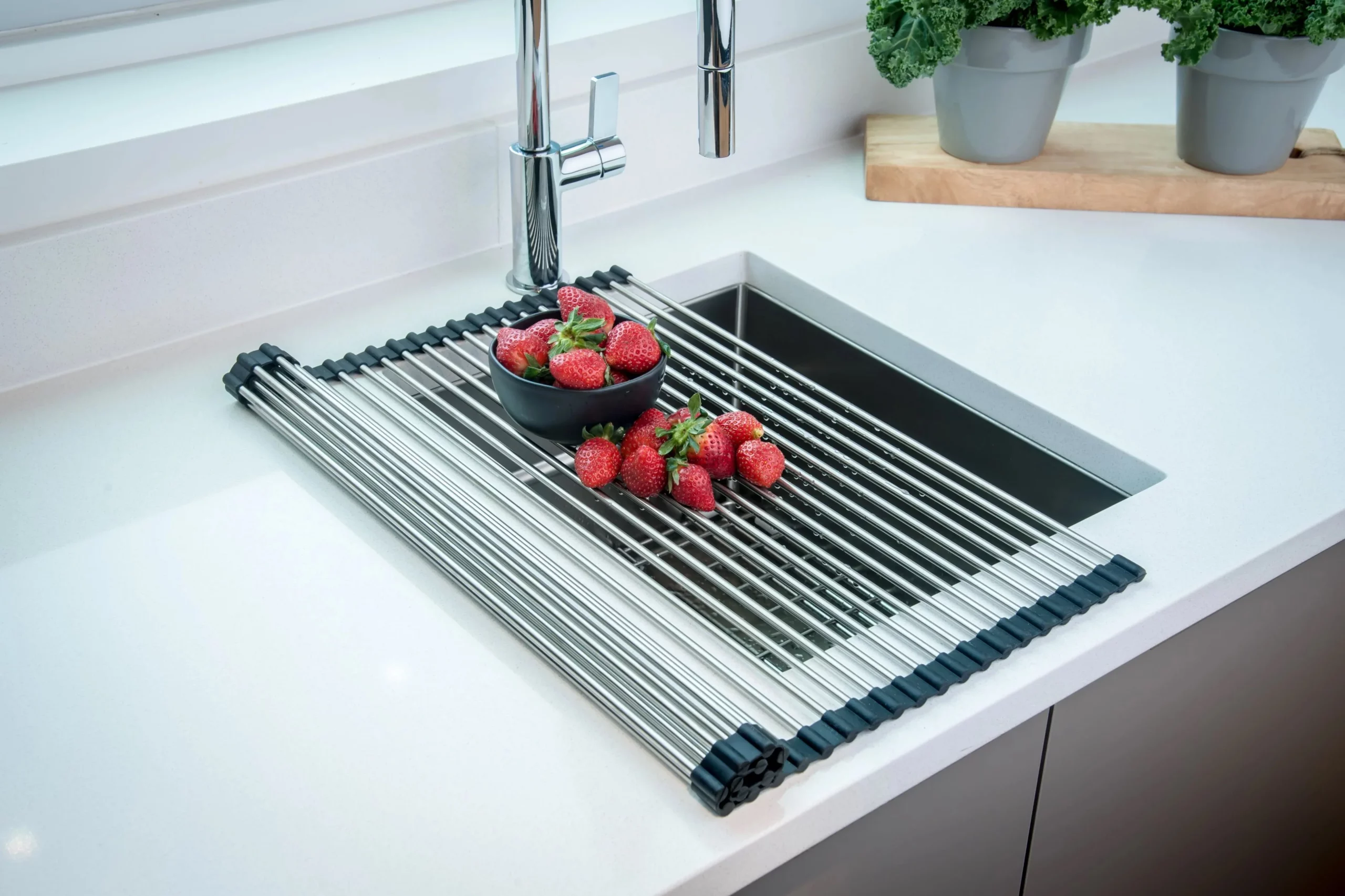 If you cook frequently, counter space is essential. This product frees up space instantly and allows you to multitask over the sink.