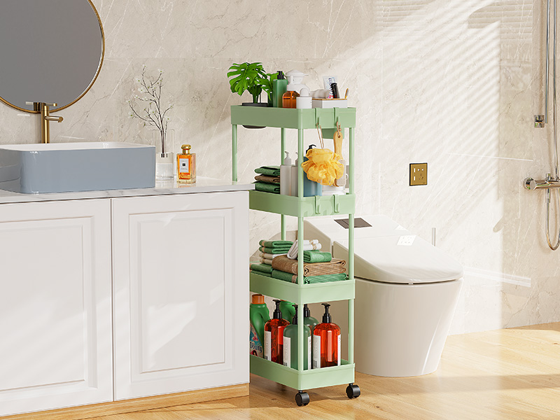 The mobility of the cart increases convenience, while its slim design allows homeowners to use previously unusable gaps. It can create new storage zones without requiring additional construction or wall installation.