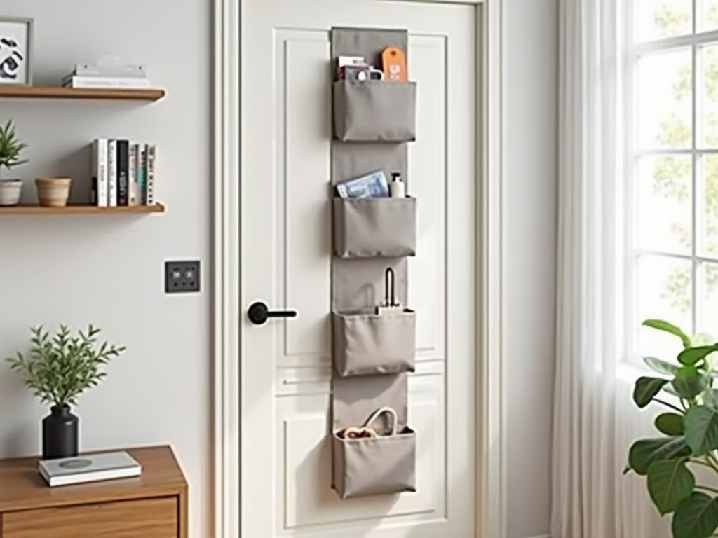 Over-the-door organizers are among the most effective small-space solutions because they utilize unused vertical door space. This product from Target provides multiple pockets that can store shoes, accessories, toys, cleaning supplies, or bathroom items.