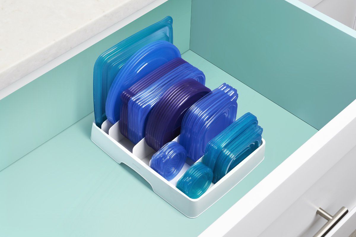 Divider-based organization technology ensures a perfectly arranged, easy-to-access storage section for lids. It eliminates the need to dig through piles of mismatched plastic containers.