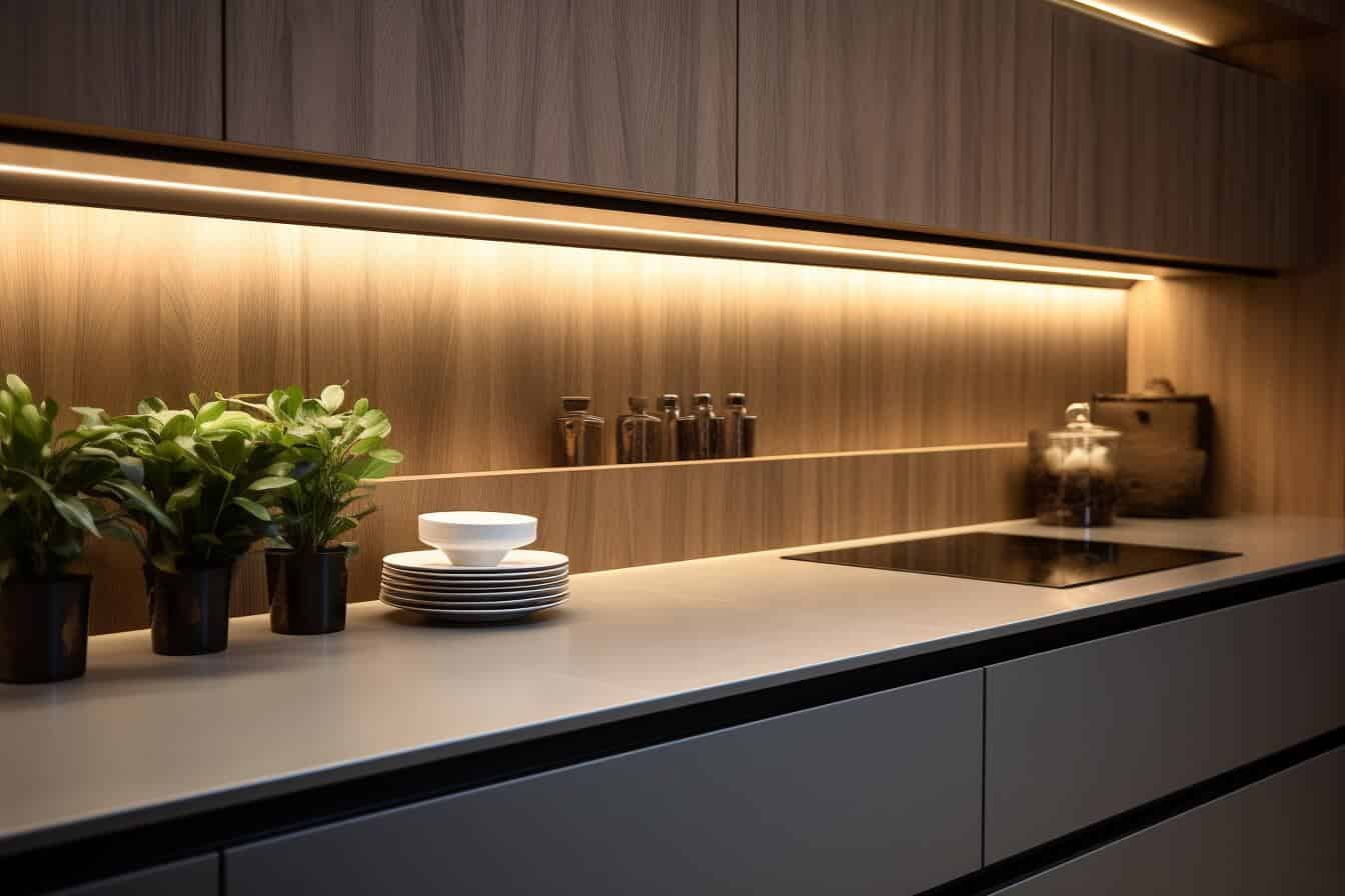Solution: Install LED under-cabinet lighting to brighten work areas and enhance finish visual quality.