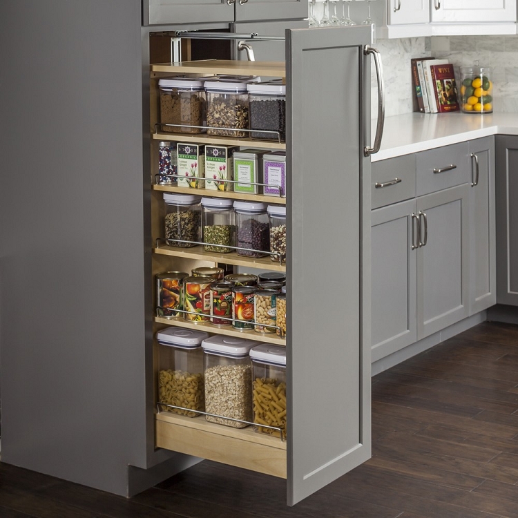 What it solves: In smaller kitchens, space between cabinets or next to the fridge is often wasted. A pull-out shelving unit optimises that gap, improving storage and keeping things accessible.