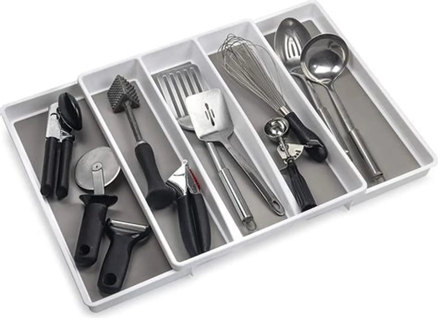 This premium utensil organizer from OXO is designed to expand to fit various drawer widths, making it ideal for fitting into your existing kitchen layout. It features adjustable dividers, high-quality plastic that’s easy to clean, and a modular layout that adapts as your needs change.