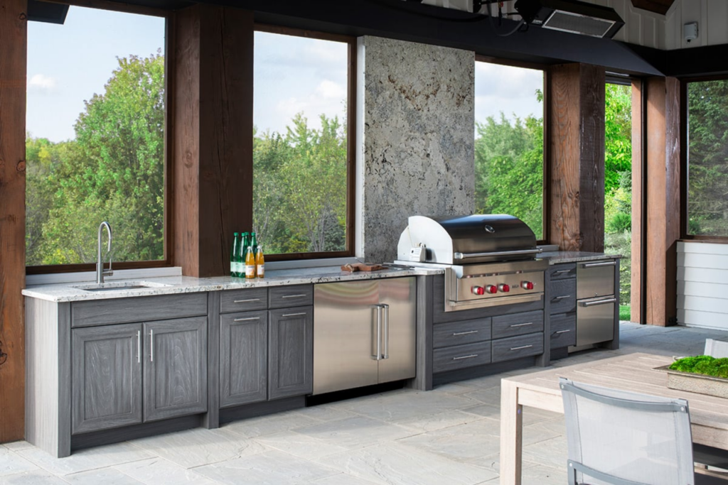 Indoor cabinets typically rely on wood or composite materials that absorb moisture and warp when exposed to outdoor elements. Outdoor kitchen cabinets eliminate this risk by using stainless steel, marine-grade polymer, concrete composite, or weather-treated aluminum instead.