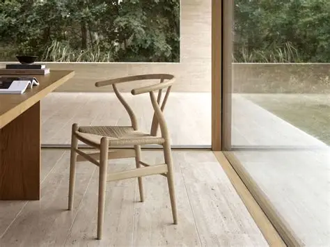 Detail & Features: Crafted in solid wood (often oak or beech) with a hand-woven paper cord seat. The sculptural Y-shaped back is both functional (offers support) and aesthetic (visual lightness).